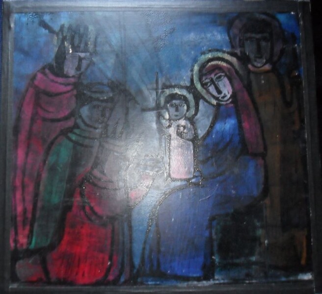 Holy family and three kings, oil - Painter: Hilde Reiser - 49x46 cm