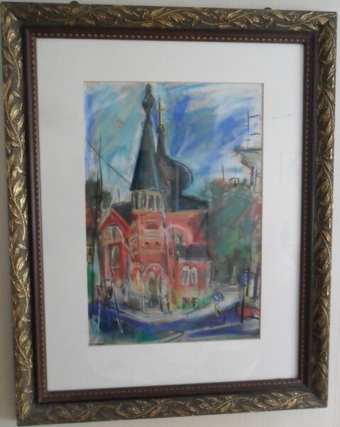 Russian Church Stuttgart, pastel - Painter: Hilde Reiser - 92x72,5 cm