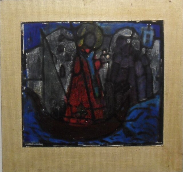 St. Nicholas in the ship, oil - painter: Hilde Reiser - 32x33,5 cm