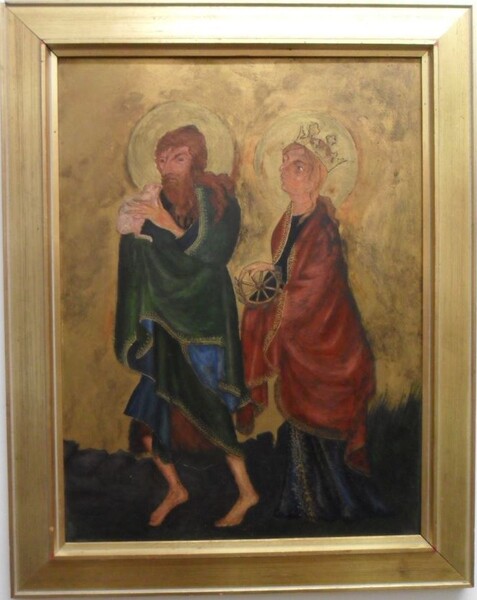 Madonna with the pope and bishop, oil - Painter: Hilde Reiser - 67x53,5 cm